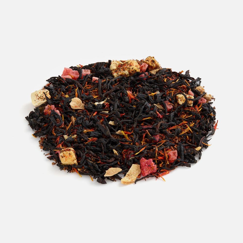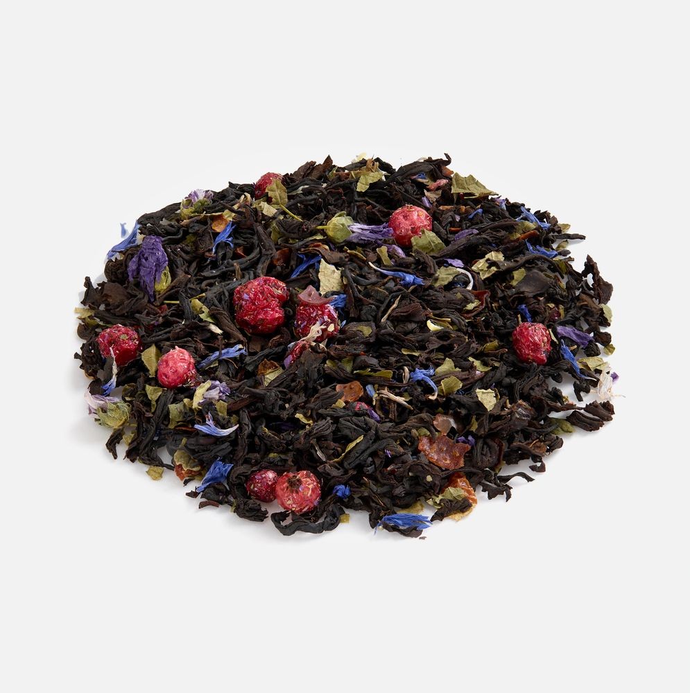 - Чай черный «Подмосковные вечера»Состав: чай черный индийский листовой OPА Assam , ягоды красной смородины сублимированные, листья смородины, лепестки василька, цветы мальвы, кусочки шиповника, ароматизатор «черная смородина»