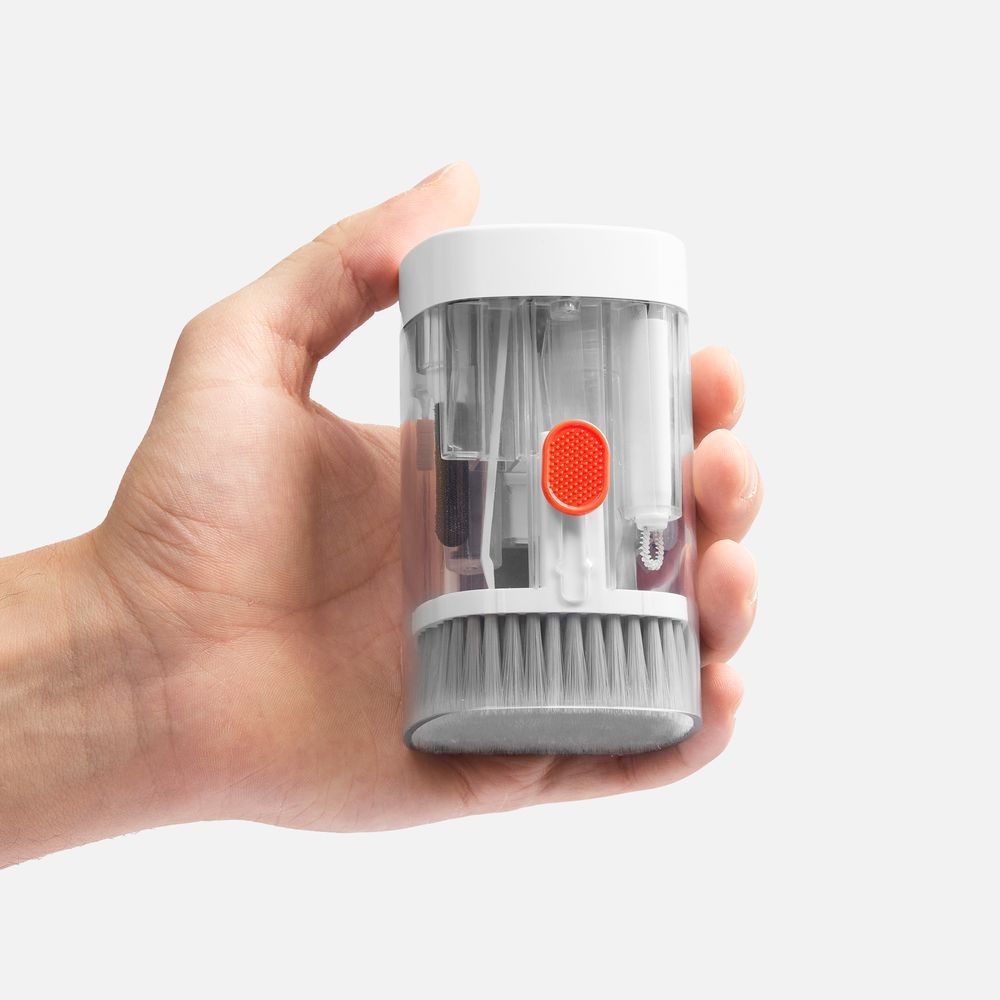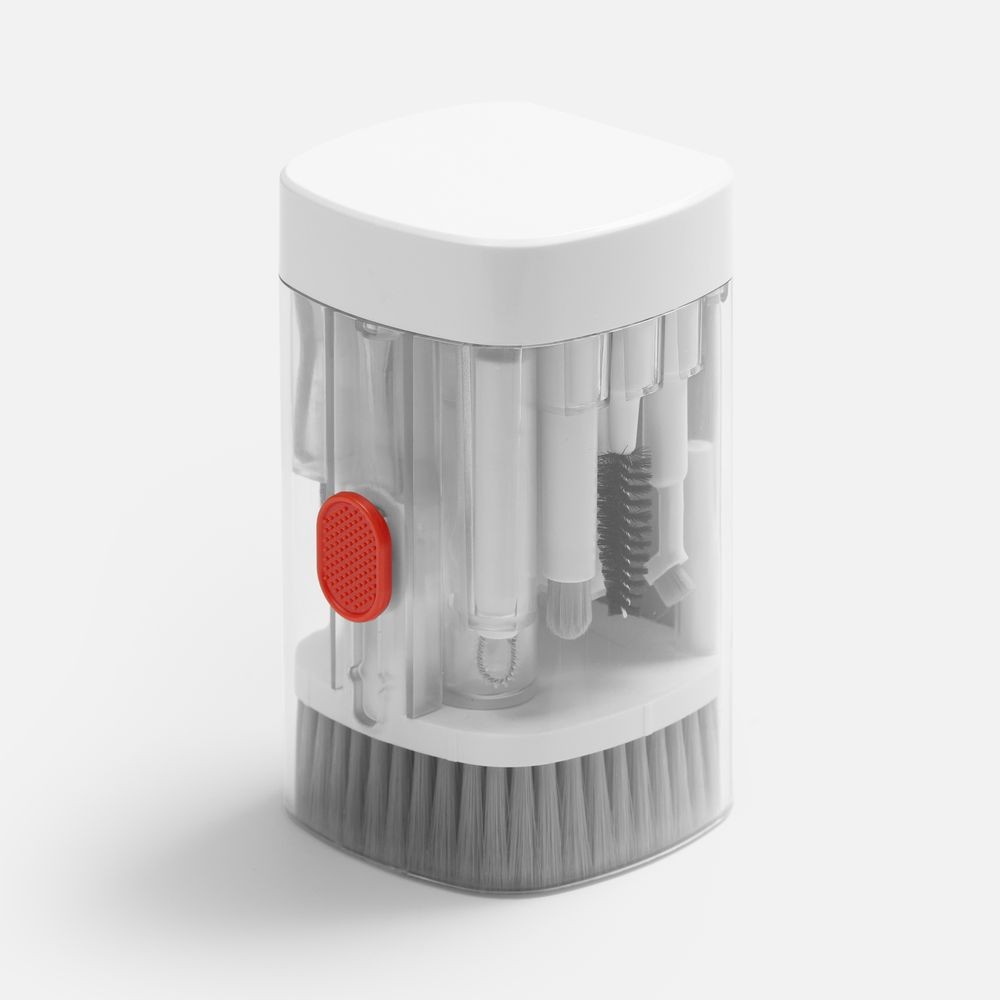 - В комплекте: большая щетка, салфетка для ухода за дисплеем, контейнер для жидкости, пластиковый пинцет, щетка с жесткой щетиной, щетка с мягкой щетиной, чистящее перо со щеткой для наушников, насадка для чистки кейса от наушников, ершик для чистки кейса от наушников, щетка с короткой щетиной, щетка с наклонной щетиной, двусторонняя насадка для чистки разъемов зарядки, двусторонняя насадка для чистки камеры, инструмент для продувки, дуговой пинцет, ключ для отсека SIM-карты, инструмент для извлечения поврежденных ключей