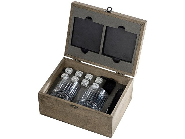 Набор для виски "Jack" состоит из двух стаканов с толстым дном, охлаждающих камней в мешочке, удобных щипцов и двух лаконичных костеров из сланцевого камня. Сет упакован в деревянную подарочную шкатулку, которая создает праздничное настроение еще до того, как вы откроете крышку. Более того, это уже готовый набор для подарка. Талькохлоритные камни не царапают бокал, не разбавляют напиток, не впитывают цвет и запах напитка. Ими легко пользоваться: просто поместите их в морозильную камеру за несколько часов до откупоривания виски. При желании после использования камни можно хранить в бархатном мешочке, который также можно забрендировать. Щипцы из стали помогут аккуратно разложить камни по бокалам, при этом не разбив их и не расплескав напиток. - рельефные бокалы из стекла - можно дарить: поставляется в красивой шкатулке с качественным ложементом - камни не впитывают цвет и запах напитка - щипцы позволят удобно зацепить камни - сланцевые костеры защитят поверхность стола от царапин, следов и перепадов температур
