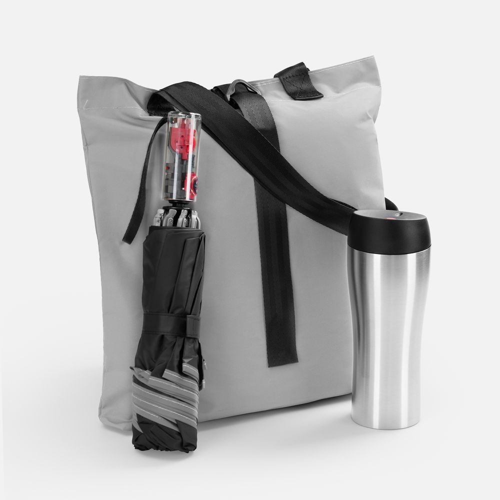 В набор Future Manifest входят необычный складной зонт наоборот и вакуумный термостакан с высокими показателями удержания температуры, упакованные в шопер из светоотражающей ткани, — идеальный аксессуар для комфортных и безопасных прогулок в любое время суток. Future Manifest. Для оригинальных маркетинговых сообщений.
