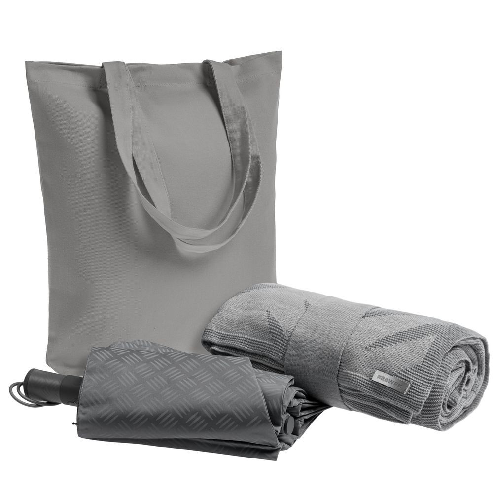 Размеры: сумка: 35х38х5 см, ручки: 54х2,5 см; плед: 90х160 см; зонт: длина 57 см; диаметр купола 97 см
