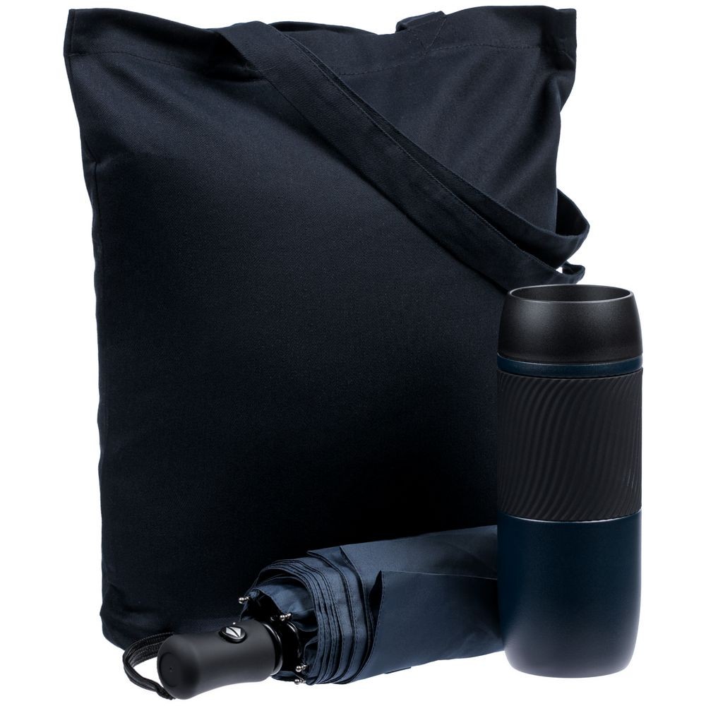 Материал: термостакан - нержавеющая сталь, пластик; зонт - эпонж, металл, пластик; сумка - хлопок 100%