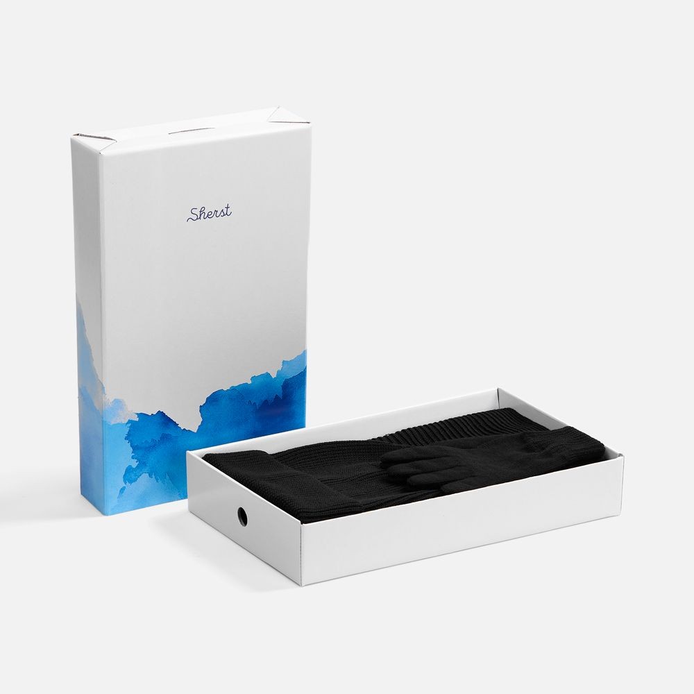 Удлиненная шапка с широким отворотом и фактурной вязкой мягко облегает голову, создавая элегантный силуэт. Широкий шарф с выразительным рельефом позволяет экспериментировать с драпировками, добавляя образу объем и динамику. Перчатки с аккуратной резинкой на манжете обеспечивают идеальную посадку и тактильный комфорт.