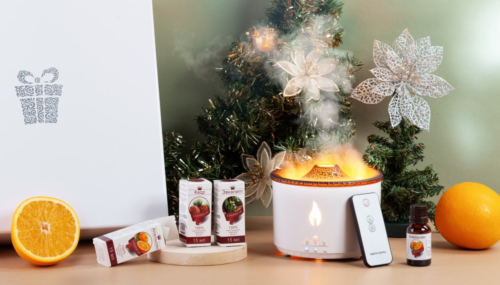 Подарочный набор "Вулкан чувств" для создания уютной атмосферы. Современный аромадиффузор "Smart Volcano" с эффектной подсветкой не только яркая деталь в интерьере, но и настоящий помощник в укреплении иммунитета, за счет поддержания оптимального микроклимата в помещении и функции ароматерапии.