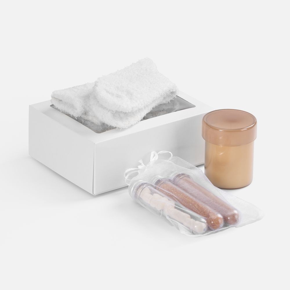 Пушистые носки и свеча с ароматом сосны и кипариса — уютный дуэт, который создает атмосферу безмятежности. Свеча наполняет пространство теплым светом и лесными нотами; после использования стильный подсвечник легко превращается в мини-контейнер или шкатулку.Набора для приготовления какао хватит на две чашки — можно устроить мини-посиделки или оставить на потом себе, любимому. Идеальный выбор для тех, кто ищет баланс между эстетикой и функциональностью.Reverie. Воплощая мечты.