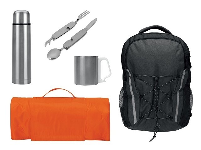Набор для путешествия - полезный подарок на 23 Февраля или 8 Марта, который запомнится надолго. Термос на 750 мл из высококачественной нержавеющей стали позволит согреться в мороз и охладиться в палящий зной. Обладает повышенной прочностью и надежностью, сохранит ваши напитки теплыми более 24 часов. Набор складных столовых приборов - незаменимая вещь в дороге или походе. В нем есть все, что необходимо - ложка, вилка, ножик, открывалка бутылок и жестяных банок. Также имеется удобное кольцо для подвешивания. При необходимости набор разделяется на две части. Стальная кружка с двойными стенками имеет удобную пластиковая ручка эргономичной формы, с помощью которой кружка легко закрепляется на походном рюкзаке или поясе. Легкий, но очень вместительный рюкзак специально разработан для любителей туризма, походов и поездок. Рюкзак имеет наружные карманы спереди и сбоку, а если вам понадобится поработать удаленно, то внутри предусмотрен карман для ноутбука 15". Двусторонний плед идеален для пикников, походов, отдыха на пляже: мягкий флис согреет вас, а непромокаемая основа защитит от влаги. Ручка для переноски создает дополнительное удобство. - индивидуальный чехол для складных приборов; - объём кружки 220 мл; - рюкзак оснащен светоотражающими полосами для безопасности в темное время суток.