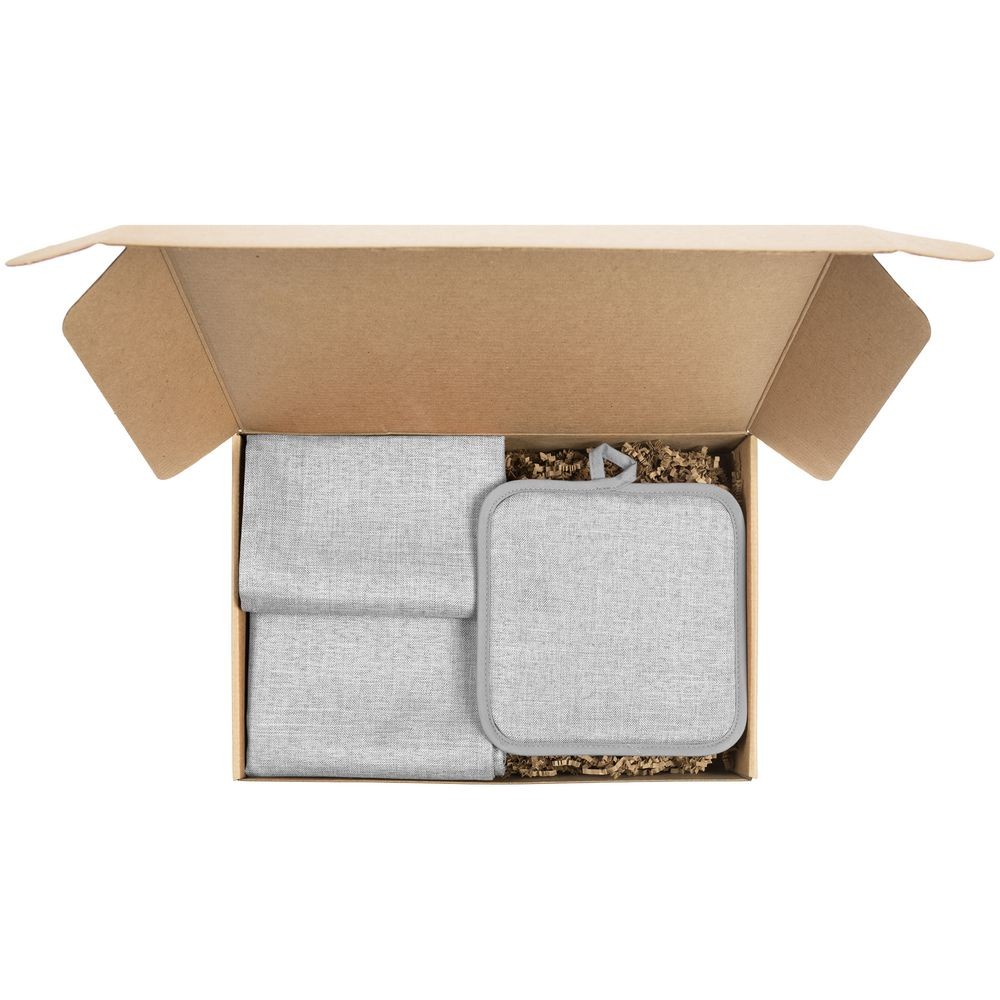 Материал: салфетка - полиэстер 100%; прихватка - полиэстер 100%; коробка - микрогофрокартон, плотность 385 г/м²