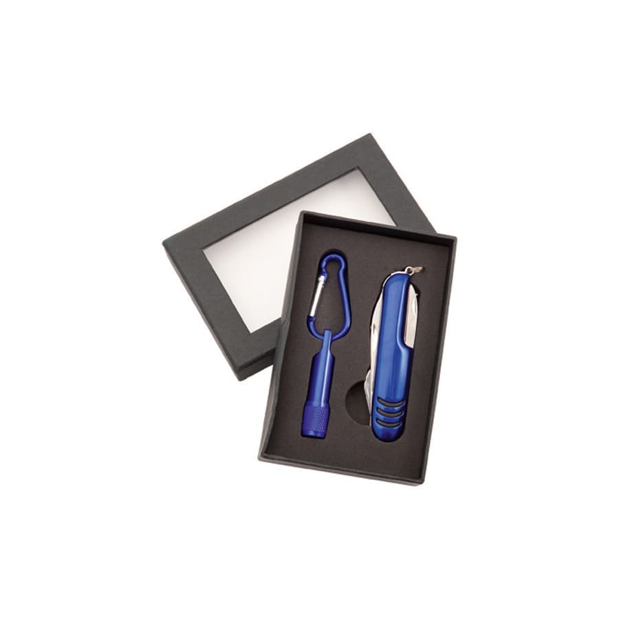 Набор Sufli: фонарик с 1 светодиодом, батарейка включена. Нож-мультиинструмент, 7 функций, синий, Синий