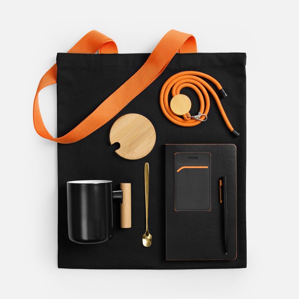 Подарочный набор с термосом, блокнотом, ручкой и чаем, черный