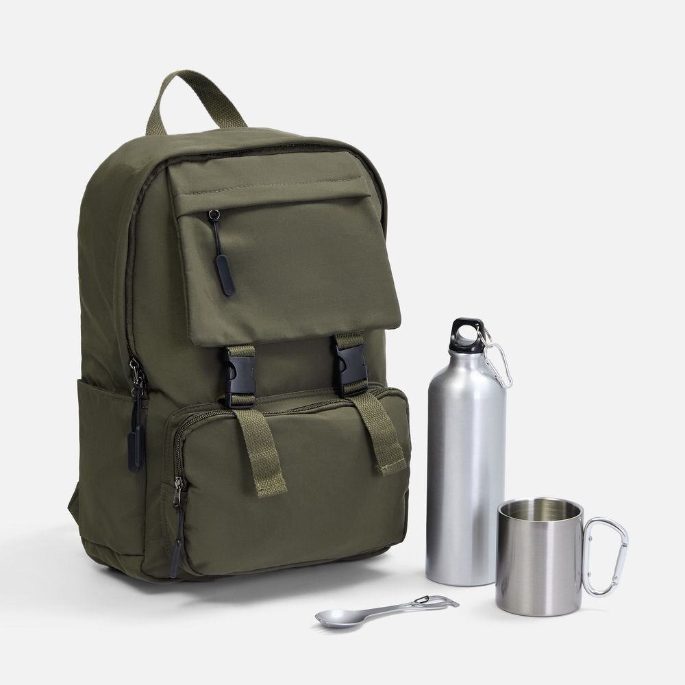 Походный набор TrekKing создан для тех, кто не привык сидеть на месте, ценит активный отдых на природе и новые впечатления. В городском рюкзаке с легким outdoor-акцентом здесь собрано самое главное, что всегда поддержит в пути, на пикнике или на прогулке — и выдержано в классическом походном стиле.TrekKing. Дороги, которые мы выбираем.Рюкзак выдерживает нагрузку до 10 кг. Емкость кружки 330 мл.