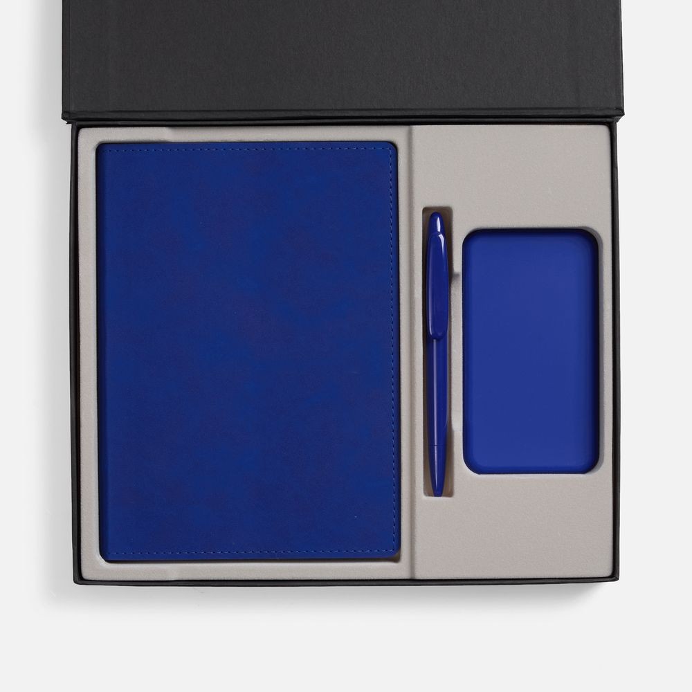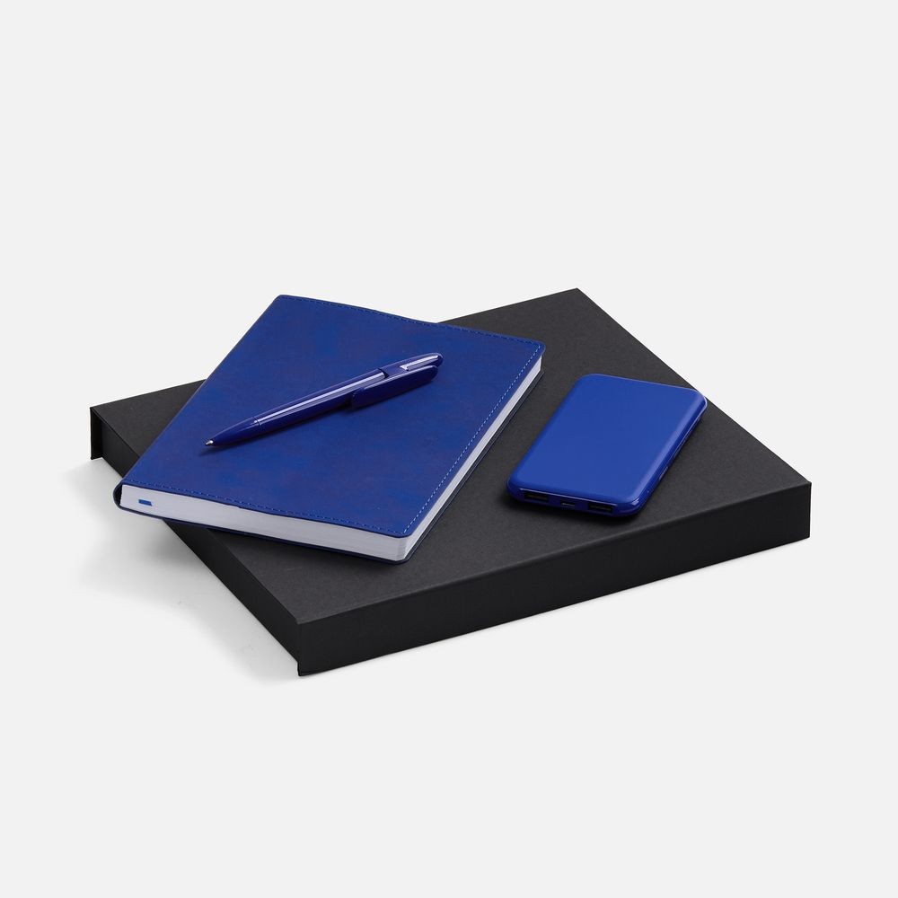 Набор с внешним аккумулятором позволит всегда оставаться на связи, а бессменная офисная классика — ежедневник и ручка — помогут направить энергию в правильное русло!