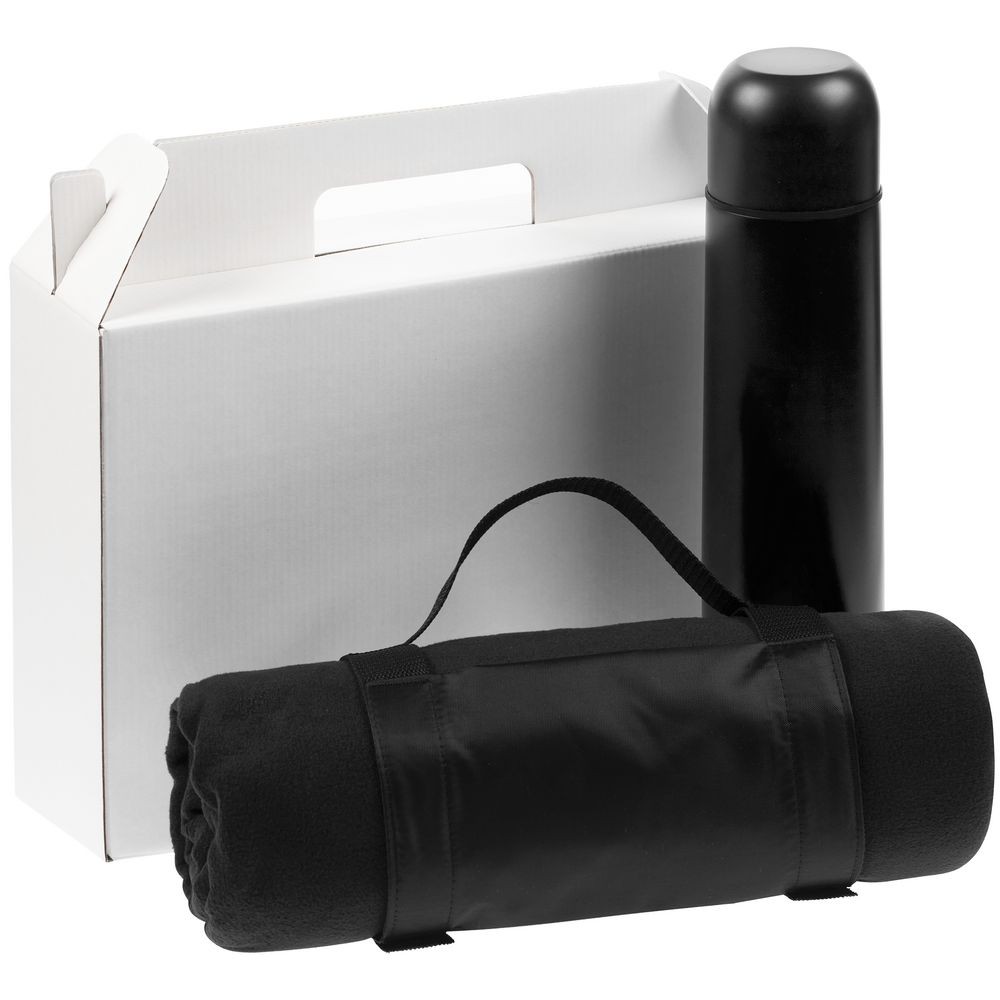 Материал: термос - нержавеющая сталь, корпус; пластик, крышка; металл, внутренняя колба; плед - флис, плотность 180 г/м²; коробка - микрогофрокартон