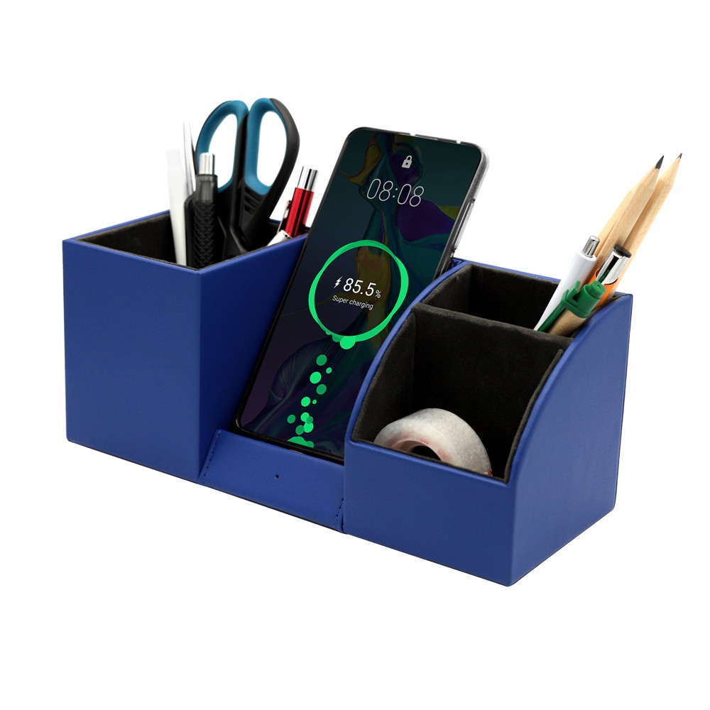 Настольный органайзер Boss c беспроводной зарядкой и световым индикатором. Для работы или дома, сочетающий в себе подставку для канцелярских принадлежностей и мелких аксессуаров. Цвет по PANTONE® (максимально приближен): 2140C.Вход: 9V/1.67A/5V/2A USB 2.0. Выход: Беспроводная зарядка 10W. В комплекте кабель USB и инструкция. Область зарядки смартфона поддерживает все Android/Ios устройства с функцией беспроводной зарядки. Для работы беспроводной зарядки необходимо подключать устройство к сети через адаптер.