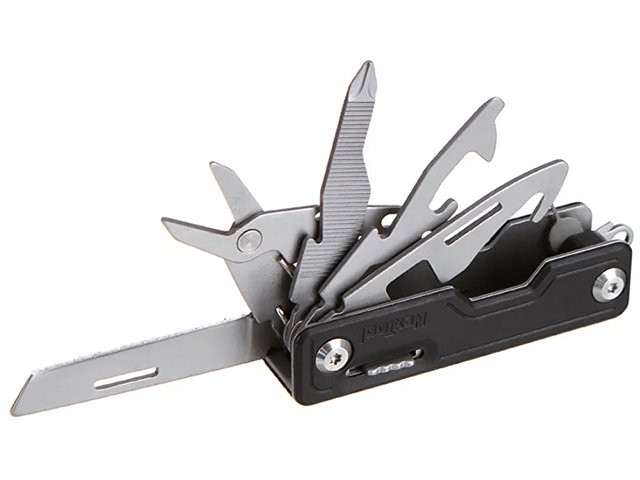 Нож-брелок NexTool Knight EDC – складной многофункциональный нож 10 в 1. Вес составляет всего 88 грамм, а размеры настолько малы, что его можно использовать как брелок для ключей, а так же этот мультитул незаменимая вещь в повседневной жизни, в походе, на охоте или рыбалке. Корпус состоит из прочного, матового ABS пластика, который обволакивает высокопрочную сталь марки 20Cr13 (корпус) и 30Cr13 (нож). Марка стали 30Cr13 (производство Германия) нержавеющая (коррозионно-стойкая). Ножи этой марки стали износостойки, легко переносят удары и не будут раскалываться при пользовании. Перечень функционала: нож (длина лезвия 5 см), аварийный молоток для разбивания стекла, открывалка консервных банок, стропорез (разрежет ремень, веревку, шнурки), ножницы, держатель для телефона (вертикальный и горизонтальный), ключ для извлечения сим-карты, напильник, открывалка для бутылок, отвертка.