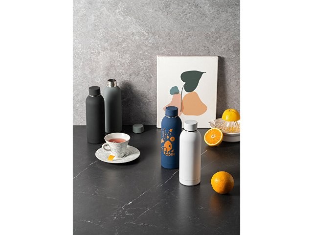 Термобутылка из нержавеющей стали с soft-touch покрытием, двойной корпус с вакуумной изоляцией и вместимостью до 550 мл. ø70 x 220 мм