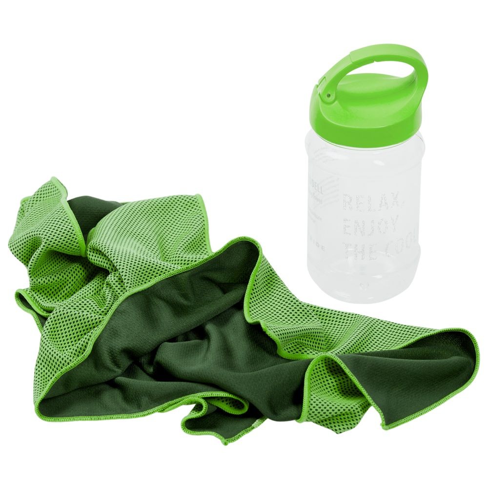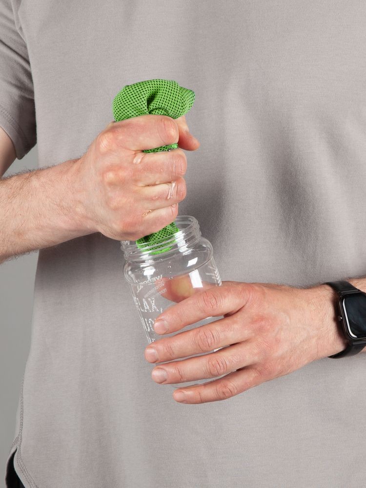 Для получения охлаждающего эффекта намочите полотенце, отожмите излишки воды и встряхните. Положите полотенце на шею, лоб или запястье, убедившись, что ткань покрывает кожу. Влага, испаряясь из полотенца, оказывает охлаждающее воздействие на кожу, обеспечивая мгновенное облегчение.При хранении в бутылке полотенце сохранит охлаждающий эффект в течение нескольких часов. Благодаря крышке-карабину ее удобно прицепить на рюкзак или сумку.Бутылка не герметична. Не переворачивайте и не кладите бутылку на бок, если внутри вода.