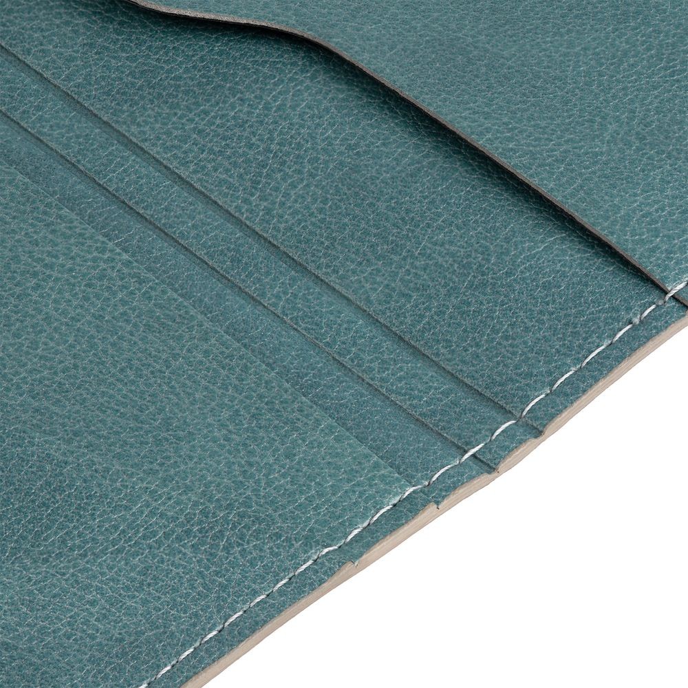 Органайзер выполнен из материала Petrus, голубой JJ, дополнен окрашенным срезом края серого цвета.