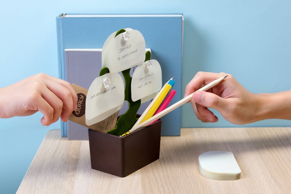 Настольные наборы для офиса – очень полезные штуки. Хороший органайзер для письменного стола заменит кучу маленьких вещей, делая рабочее пространство лаконичнее и просторнее. Органайзер для ручек на рабочий стол от компании Qualy – действительно уникальный товар. С чего же начать? Ну, во-первых, это – отличное стилистическое решение, которое мигом сделает абсолютно любой стол гораздо более приятным. Во-вторых, органайзер соединяет в себе два важных элемента рабочего места, освобождая пространство: держатель для ручек и держатель для заметок. Такой оригинальный и полезный настольный органайзер купить можно в нашем интернет магазине. Основные характеристики: В комплект органайзера включен 1 блок для записей и 6 магнитов в виде цветочков Отличный подарок офисному сотруднику или студенту Поставляется в фирменной эко-упаковке от Qualy Оригинальный товар бренда Qualy Страна производства - Таиланд. Страна бренда - Таиланд. Размеры, см - 21 x 14,5 x 6,8