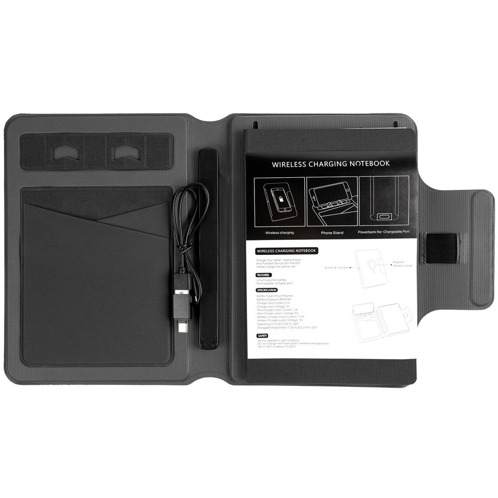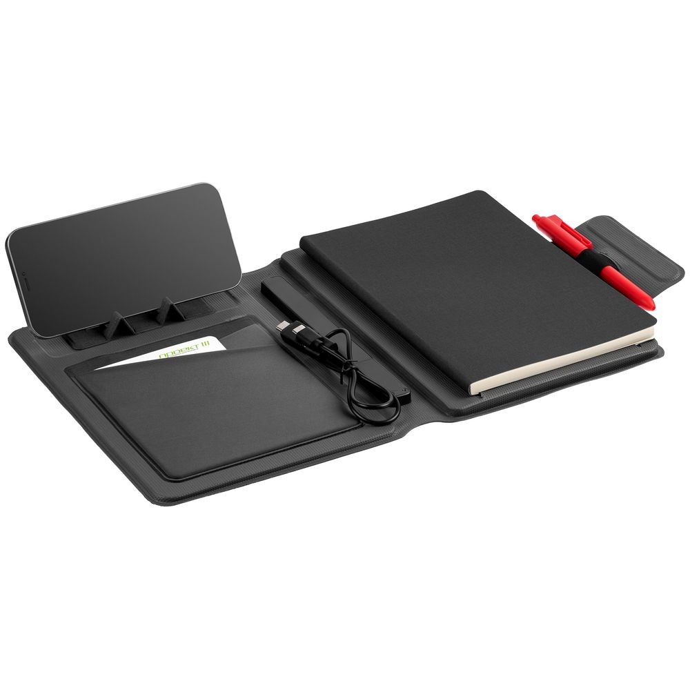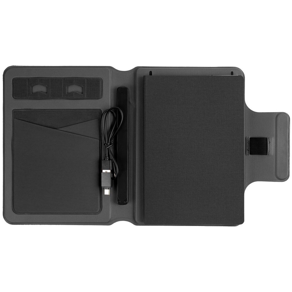 Органайзер с блокнотом и аккумулятором Oiro, черный
