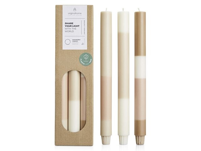 Эти свечи отличаются яркой многослойной цветовой палитрой и изготовлены вручную из воска на растительной основе, не содержащего парафина. Они не имеют запаха, имеют фитиль из 100% хлопка и горят чисто. Каждая покупка способствует посадке дерева для фермеров в Африке и поддерживает специальный проект справедливой торговли на острове Ява, Индонезия. Комплект из трех штук. Время горения свечи: 18 – 20 часов. Воск из пальмовых ядер.