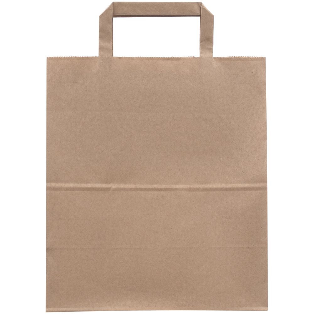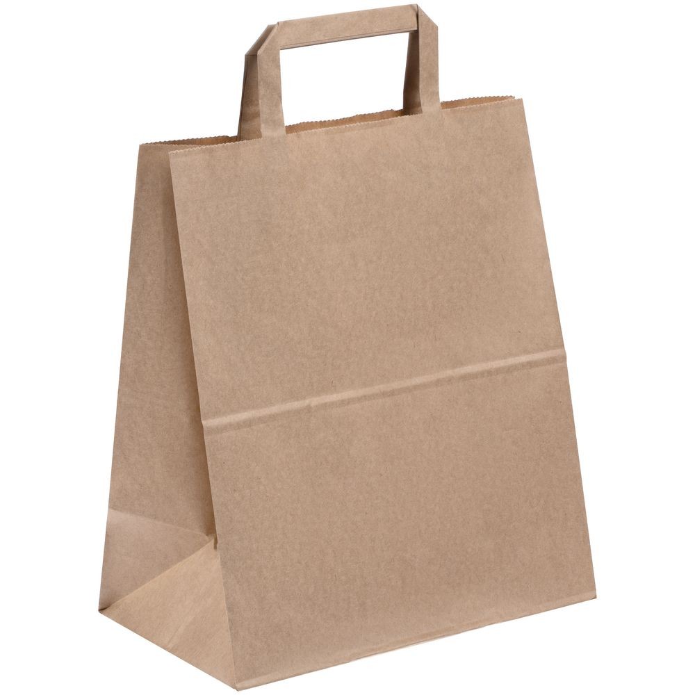 Бумажный пакет с плоскими ручками. Выдерживает нагрузку до 2 кг.Допустимо отклонение линейных размеров до 5%.