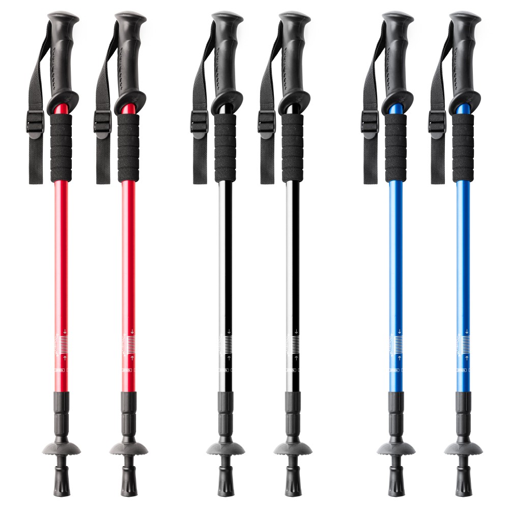 Складной набор треккинговых палок из алюминия с амортизацией. Эргономичная ручка и регулируемый ремень безопасности.