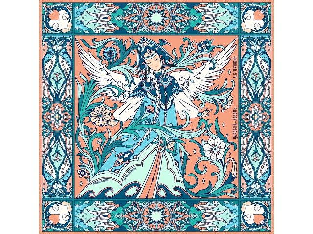 Дизайнерский платок “Царевна Лебедь” от Нины Ручкиной стал воплощением сказочного персонажа, прославленного великим и талантливым романтиком и поэтом — А. С. Пушкиным. Именно он впервые подарил нам образцы художественной русской эстетики, исходящей из самой глубины русской души. В центре авторского принта — удивительной красоты женщина с белоснежными крыльями, наделенная магическими способностями и житейской мудростью. Оригинальное сочетание тонов, цветочных орнаментов и русского колорита делают аксессуар нежным и самобытным. Платок с прекрасной Царевной Лебедь подойдет изящным и романтичным натурам, предпочитающим классику и традиционный русский стиль. Он станет деликатным дополнением как повседневного, так и вечернего образа утонченной леди.