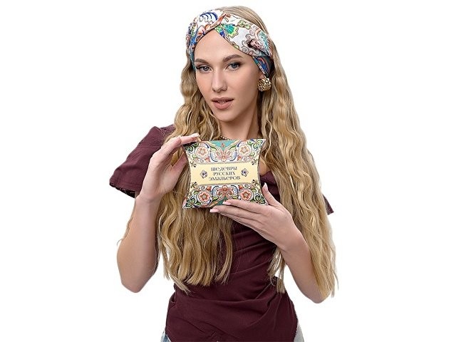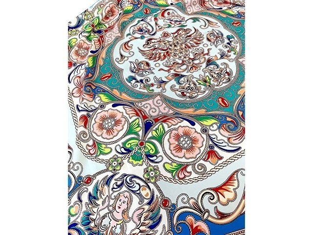 Издавна произведения отечественных мастеров эмальерного искусства славятся изысканностью рисунка и необыкновенным разнообразием красок. В дизайне аксессуара «Шедевры русских эмальеров» раскрывается филигранность изобразительного наследия эмали имперского периода. Сложная система многоцветного декора полотна, ажурная композиция причудливых растительных мотивов и христианской символики выражают дух русского творчества, воплощают красоту национальной художественной традиции. В центре изображен двуглавый орел – государственный герб Российской империи, триумфальный символ величия нашей страны. Платок «Шедевры русских эмальеров» станет яркой деталью стиля и знаковым памятным подарком. Над дизайном работали: Нина Ручкина, Анна Шулик.