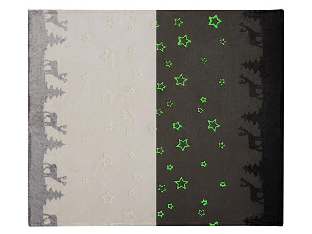 Размер 130х150 см, мягкий приятный на ощупь флис, новогодний принт светится в темноте, создаст уютную обстановку дома, подойдет под любой интерьер, согреет в прохладную погоду.