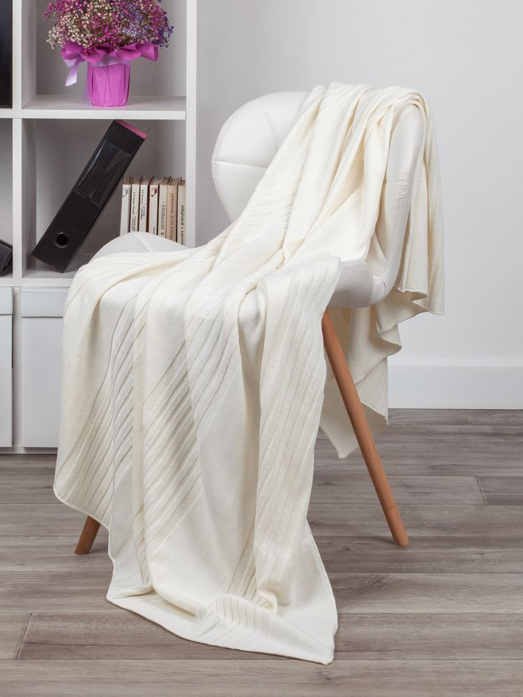 Двусторонний плед рельефной вязки.Поставляется в пакете с липким краем.