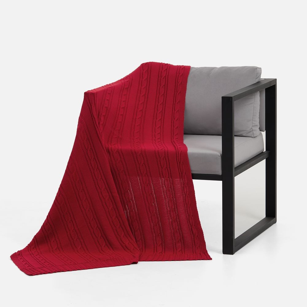 Тонкое переплетение вертикальных кос-жгутов создает благородный стиль, где простота линий встречается с изысканной рельефной текстурой. Плед из мягкого акрила сохраняет тепло, оставаясь удивительно легким и воздушным.