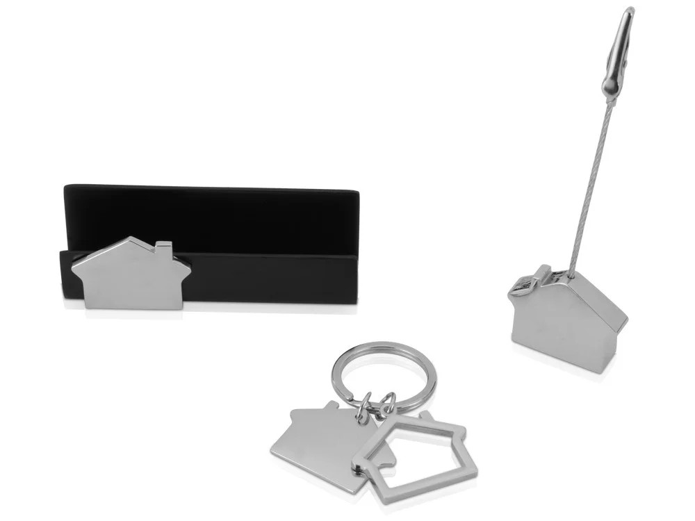 Стильный тематический набор для строительной сферы Создайте профессиональный и элегантный образ с нашим тематическим набором — отличным решением для организаций, занятых в строительной сфере, и не только. Этот изящный комплект включает визитницу, брелок и держатель для бумаг, выполненные из металла серебристого цвета в форме домика — символа надежности и профессионализма. Преимущества набора: Идеально подчеркнет специализацию вашей организации или станет оригинальным подарком для коллег и партнеров. Практичные и изящные аксессуары, удобные для ежедневного использования. Универсальный дизайн, сочетающийся с деловым стилем. Технические характеристики: Материал: металл Размеры (см): 18 х 15,8 х 5 Комплектация: подставка под визитки, держатель для документов, брелок