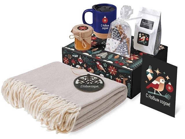 Подарочный набор c пледом, кружкой и вареньем, синий