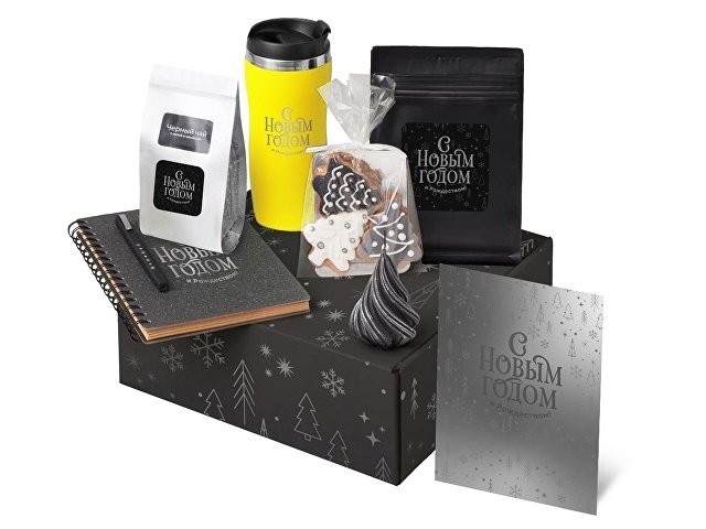 Подарочный набор c термокружкой, чаем, кофе и блокнотом, желтый