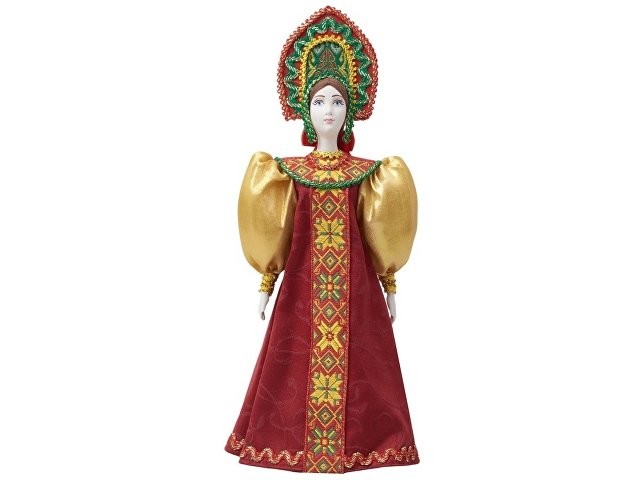 - Фарфоровая кукла в народном костюме ручной работы: расписной сарафан и кокошник с традиционной вышивкой воссоздают образ русской красавицы.
