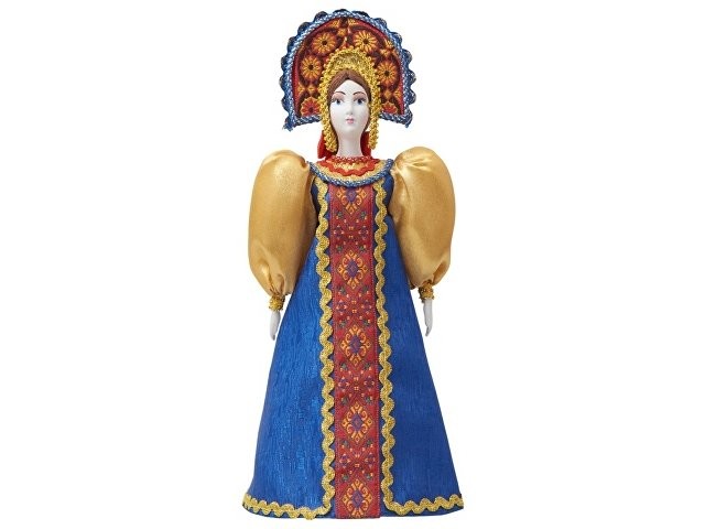 - Фарфоровая кукла в народном костюме ручной работы: расписной сарафан и кокошник с традиционной вышивкой воссоздают образ русской красавицы.