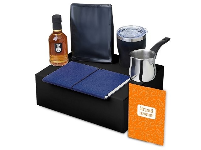 Материал: сироп - стекло, блокнот - искусственная кожа, бумага, турка - нержавеющая сталь, бакелит, кофе - пластик, термокружка - нержавеющая сталь, керамика, полипропилен, мешок - нетканый материал (спанбонд), коробка -картон