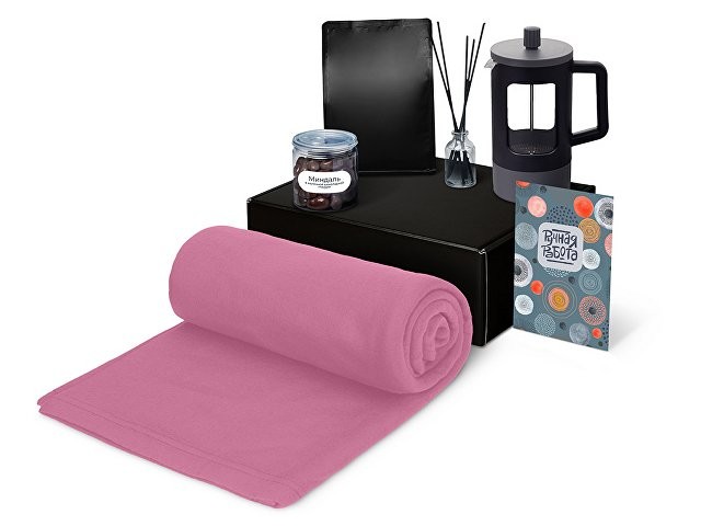 Материал: плед - флис, полиэстер, кофе - пластик, френч-пресс - нержавеющая сталь, боросиликатное стекло, ПП пластик, диффузор - стекло, миндаль - пластик, мешок - нетканый материал (спанбонд), коробка - картон