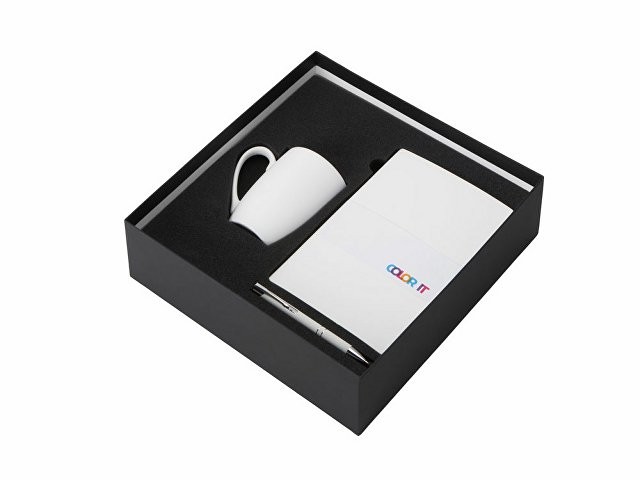 Color It — линейка, в которую входят хиты мерча в десяти самых популярных цветах. Еще никогда собрать сет под свой брендбук не было так просто. Широкая цветовая палитра серии позволяет создать идеальный набор в едином оттенке Pantone. Все товары имеют тактильно приятное покрытие софт-тач. Сет поставляется в коробке: мы продумали все, включая подарочную упаковку, за вас — осталось нанести лого! Фарфоровая кружка с удобной ручкой брендируется методом гравировки, поэтому нанесение будет долговечным и не сотрётся при мытье кружки. Бизнес-блокнот в твёрдой обложке имеет ляссе в тон обложки и среза. Бумажный блок разлинован в линейку и выполнен из бумаги, полученной из древесины из специальных восполняемых лесных ресурсов, имеет сертификат FSC. Шариковая ручка имеет сменный стержень, поэтому такой мерч прослужит дольше обычной одноразовой ручки, долго напоминая о вас клиентам. - объём кружки: 300 мл; - блокнот А5 128 листов; - ручка с необычным слайдером; - подарочная упаковка из картона, оклеенного дизайнерской бумагой уже включена в набор