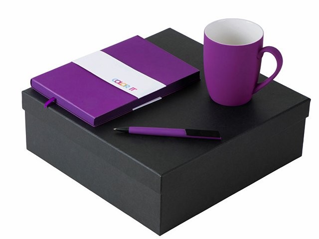Color It — линейка, в которую входят хиты мерча в десяти самых популярных цветах. Еще никогда собрать сет под свой брендбук не было так просто. Широкая цветовая палитра серии позволяет создать идеальный набор в едином оттенке Pantone. Все товары имеют тактильно приятное покрытие софт-тач. Сет поставляется в коробке: мы продумали все, включая подарочную упаковку, за вас — осталось нанести лого! Фарфоровая кружка с удобной ручкой брендируется методом гравировки, поэтому нанесение будет долговечным и не сотрётся при мытье кружки. Бизнес-блокнот в твёрдой обложке имеет ляссе в тон обложки и среза. Бумажный блок разлинован в линейку и выполнен из бумаги, полученной из древесины из специальных восполняемых лесных ресурсов, имеет сертификат FSC. Тонкое письмо ручки обеспечивается пишущим узлом с толщиной письма 0,5 мм с нажимным механизмом. Ручка имеет сменный стержень, поэтому такой мерч прослужит дольше обычной одноразовой ручки, долго напоминая о вас клиентам. - объём кружки: 360 мл; - блокнот А5 128 листов; - ручка с необычным слайдером; - подарочная упаковка из картона, оклеенного дизайнерской бумагой уже включена в набор
