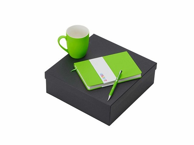 Подарочный набор с блокнотом С2, металлической ручкой и кружкой, зеленое яблоко