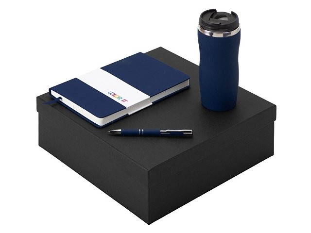 Подарочный набор с блокнотом С3, металлической ручкой и термокружкой, темно-синий