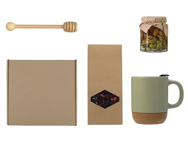 Набор станет приятным и неожиданным подарком для ценителей чаепитий и сладостей. Керамическая кружка оснащена пробковым дном, которое позволяет ставить ее на стол мягко, без скольжения и без стука, а также крышкой, которая позволит вашим напиткам дольше оставаться горячими. Купаж классического индийского чая, дополненный фруктами, ягодами и кондитерскими добавками обладает мощным согревающим и тонизирующим эффектом. Этот чай отлично сопровождает различные десерты. Натуральный мёд с грецкими орехами, миндалём, кешью и тыквенными семечками станет отличным дополнением к любому чаепитию. Витамины и микроэлементы, в избытке содержащиеся в орехах и семечках, помогут поддержать иммунитет и укрепить организм. Специально для меда существует деревянная ложечка, из-за интересной формы она носит название «веретено». Набрать мед с помощью этой ложки довольно просто: нужно опустить ложку в баночку с медом и покрутить ею в любимом лакомстве. объём кружки: 400 мл; масса нетто: 250 мл; вкусный подарок для мужчин и женщин; подарочная коробка включена в набор. Кружку можно мыть в посудомойке, но без донышка и крышки, которые нужно снять перед мойкой. Пластиковая крышка легко моется вручную под струей воды.