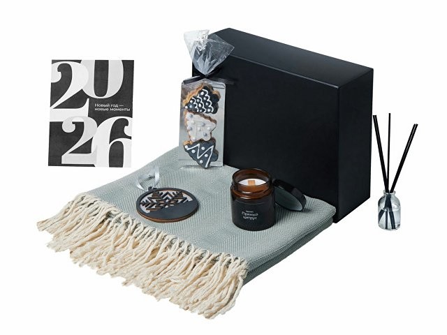 Новый год — новые моменты, которые хочется прожить по-настоящему. Вспомните детство, когда мы никуда не спешили, наслаждались каждым мгновением и делали то, что нам нравилось. Наборы серии Re: напоминают: важнее всего человек, а не его роль. Они дарят возможность замедлиться, отложить гаджеты и насладиться настоящим. Пусть новогоднее время станет паузой, наполненной тишиной, теплом и моментами, которые восстанавливают перед новым годом. Каждый набор — как мини-ритуал: согреться, замедлиться, почувствовать себя, поблагодарить и восстановиться после года, полного скорости, дедлайнов и шума. Это не о деловом «спасибо» — это о настоящем внимании. Это о том, чтобы сказать: «Я вижу, сколько ты сделал. А теперь — время для тебя». Re:Still — о тихих моментах, когда можно остановиться и просто быть. Светлый плед и мягкий свет свечи создают уют, диффузор с ароматом еловых шишек и хвои наполняет пространство ощущением зимнего леса, а имбирные печенья с традиционными ароматами корицы и специй добавляет зимнюю сладкую радость. Елочная подвеска из дерева станет символом этих мгновений и подарит уютное настроение, которое хочется сохранить. Этот набор приглашает замедлиться, насладиться атмосферой и посвятить время себе.