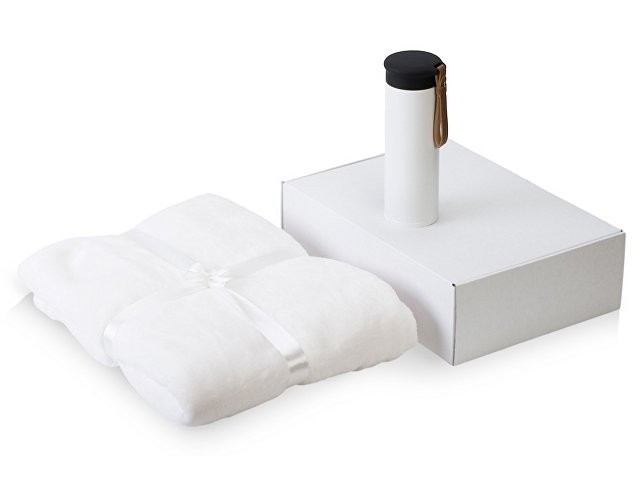 Подарочный набор с пледом, термосом "Cozy hygge" 2.0, белый
