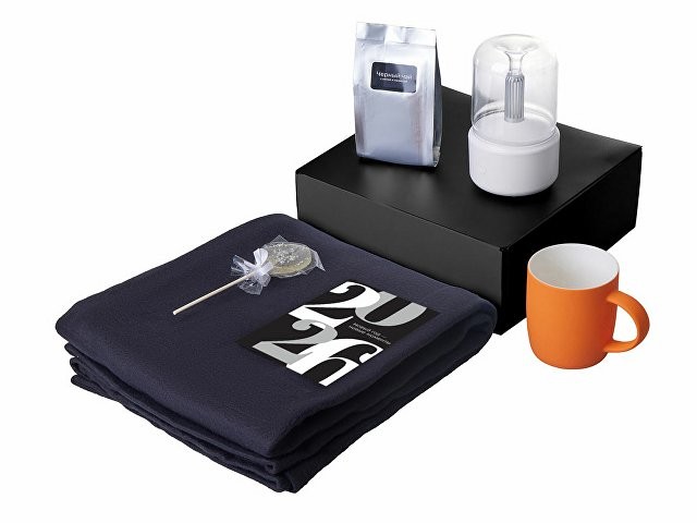 Материал: плед - флис 100% полиэстер; увлажнитель-аромадиффузор - АБС пластик, поликарбонат; кружка - костяной фарфор с покрытием soft-touch; открытка - бумага; мешок - нетканый материал (спанбонд)