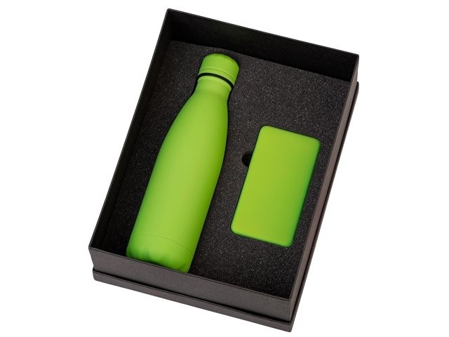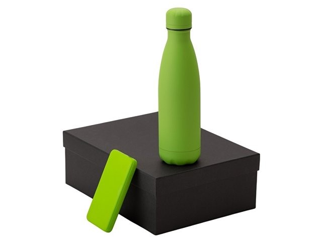 Подарочный набор с термобутылкой и повербанком С2, зеленое яблоко