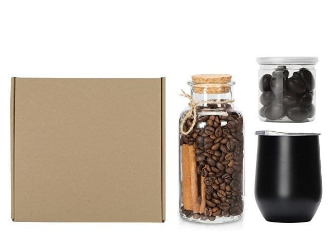 Подарочный набор с термокружкой, кофе и миндалем в шоколаде, черный