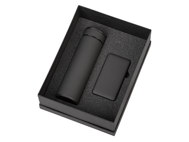 Подарочный набор с термосом и повербанком С1, черный