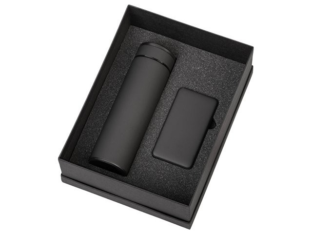 Подарочный набор с термосом и повербанком С2, черный